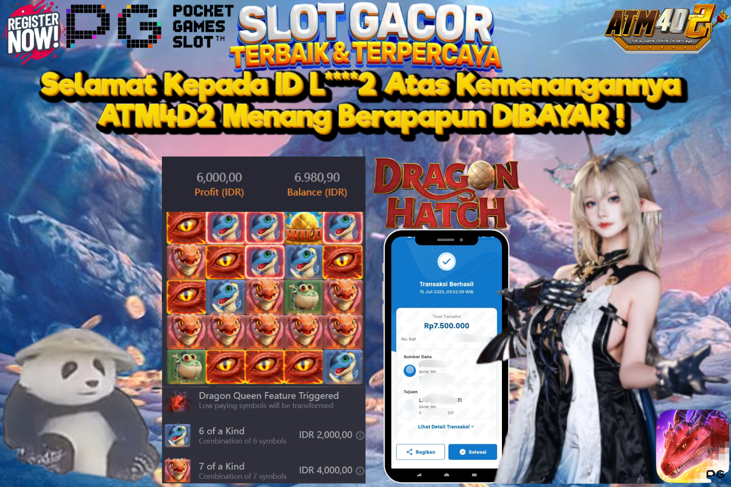 JACKPOT SLOT DRAGON HATCH 15 JULI 2025 , Jackpot Slot Gacor, Kemenangan Slot, Bukti Kemenangan Slot, Kemenangan Slot PG SOFT, Menang Slot online, Slot Gacor, Situs Aman Terpercaya, WD Berapapun Pasti DI Bayar Tuntas, Maxwin Slot Online.