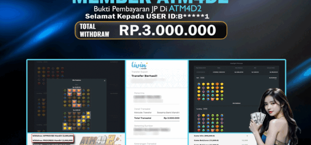 ATM4D2 dikenal sebagai situs terpercaya yang selalu menghadirkan pengalaman bermain slot online yang aman, fair, dan berlisensi resmi. Di sini, kami tidak hanya sekadar memberikan janji, tapi bukti nyata berupa slip kemenangan yang dapat Anda lihat secara langsung.