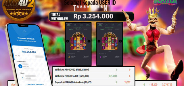 Setiap hari, member ATM4D2 berhasil meraih jackpot besar dari berbagai provider slot ternama yang kami sediakan, seperti Pragmatic Play, Habanero, PG Soft, dan masih banyak lagi. Kami secara rutin menampilkan bukti screenshot atau rekapan kemenangan yang berhasil diraih, mulai dari kemenangan ratusan ribu hingga puluhan juta rupiah. Semua slip kemenangan ini kami hadirkan untuk membuktikan bahwa di ATM4D2, peluang menang itu nyata.