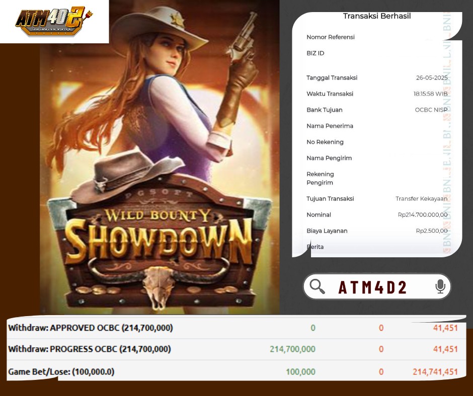 ATM4D2 dikenal sebagai situs terpercaya yang selalu menghadirkan pengalaman bermain slot online yang aman, fair, dan berlisensi resmi. Di sini, kami tidak hanya sekadar memberikan janji, tapi bukti nyata berupa slip kemenangan yang dapat Anda lihat secara langsung.