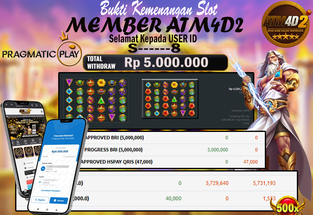 ATM4D2 dikenal sebagai situs terpercaya yang selalu menghadirkan pengalaman bermain slot online yang aman, fair, dan berlisensi resmi. Di sini, kami tidak hanya sekadar memberikan janji, tapi bukti nyata berupa slip kemenangan yang dapat Anda lihat secara langsung.