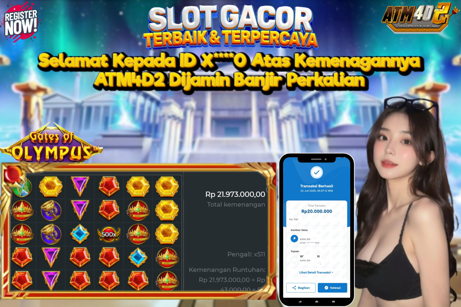 ATM4D2 dikenal sebagai situs terpercaya yang selalu menghadirkan pengalaman bermain slot online yang aman, fair, dan berlisensi resmi. Di sini, kami tidak hanya sekadar memberikan janji, tapi bukti nyata berupa slip kemenangan yang dapat Anda lihat secara langsung.