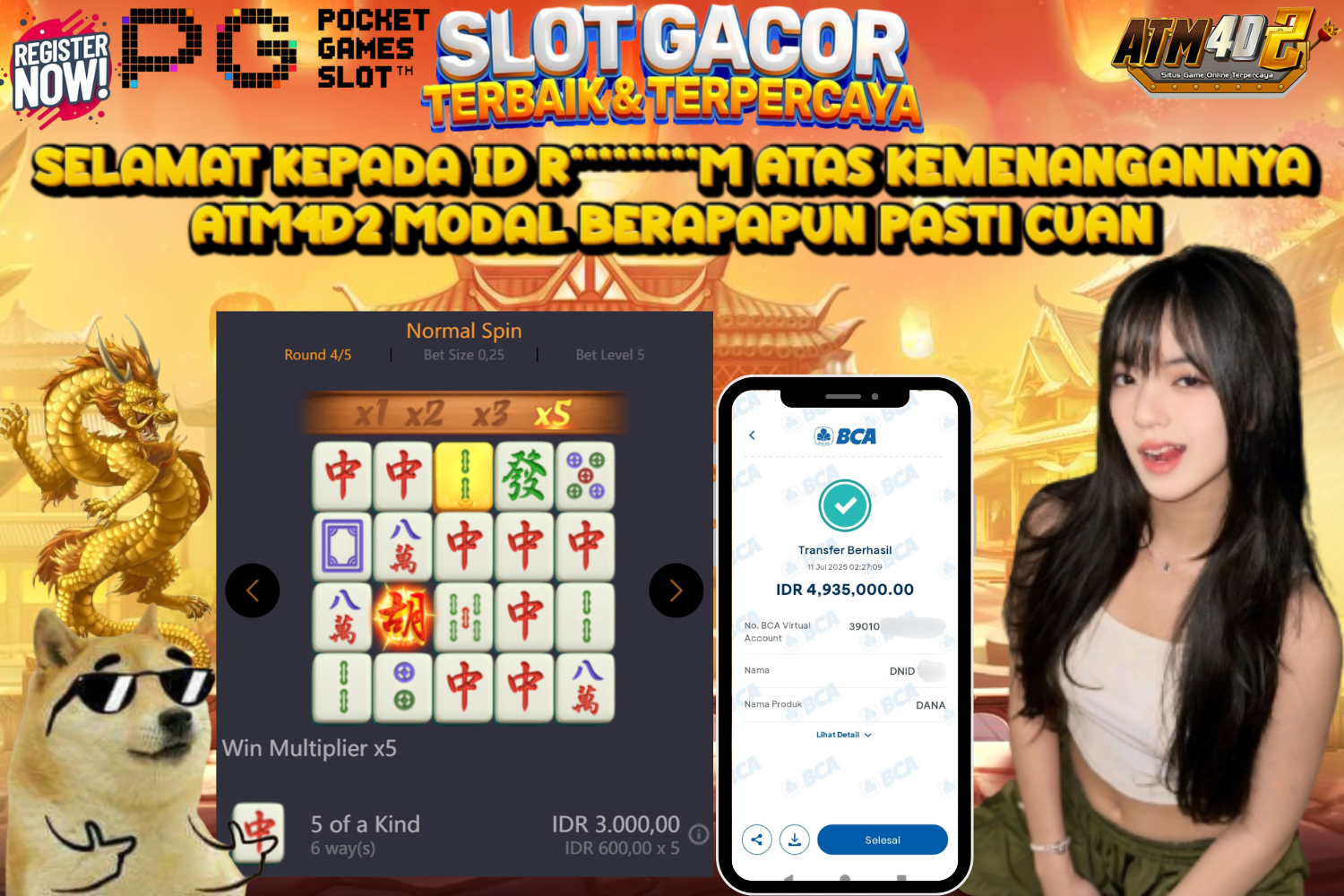 ATM4D2 dikenal sebagai situs terpercaya yang selalu menghadirkan pengalaman bermain slot online yang aman, fair, dan berlisensi resmi. Di sini, kami tidak hanya sekadar memberikan janji, tapi bukti nyata berupa slip kemenangan yang dapat Anda lihat secara langsung.