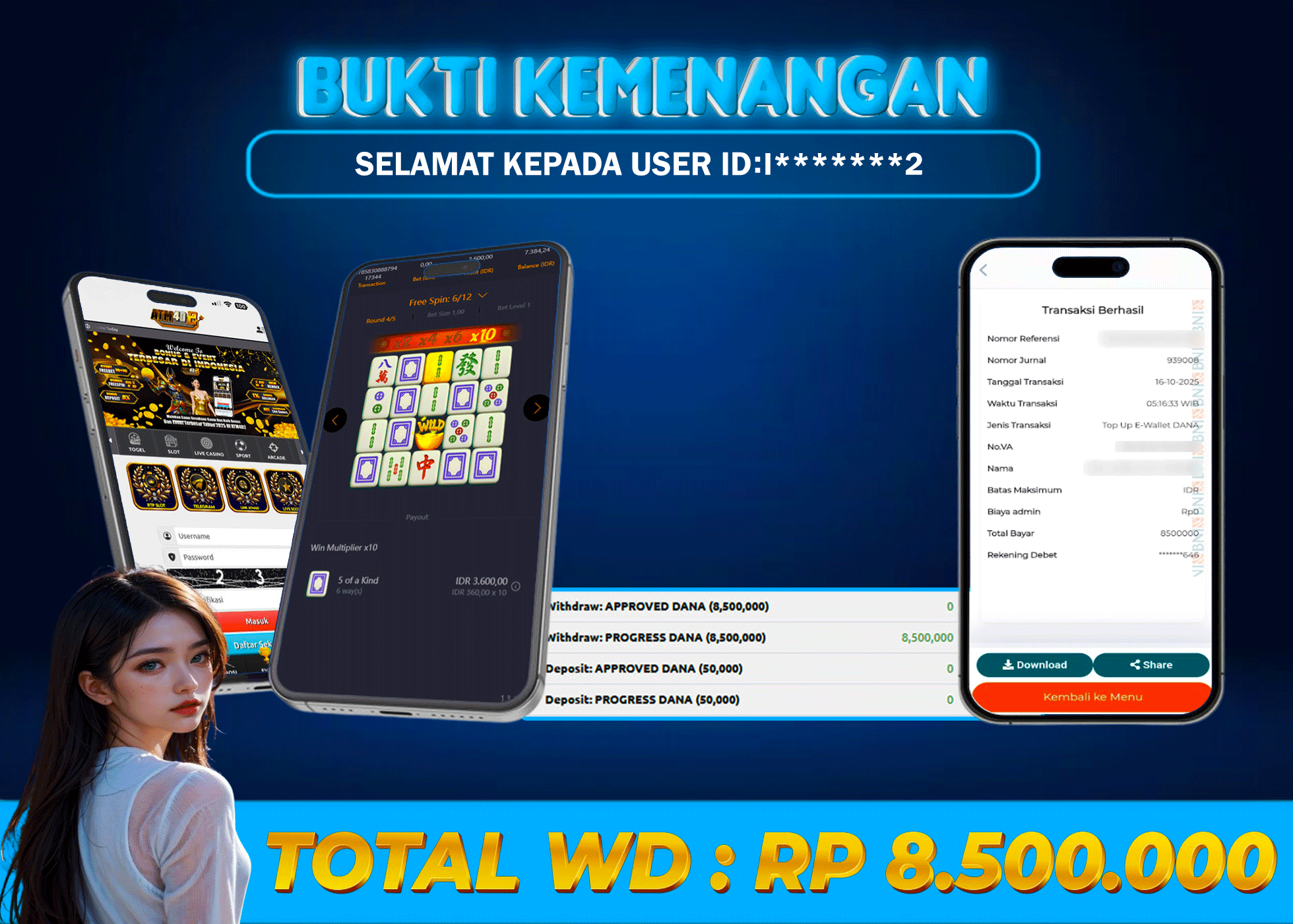 ATM4D2 dikenal sebagai situs terpercaya yang selalu menghadirkan pengalaman bermain slot online yang aman, fair, dan berlisensi resmi. Di sini, kami tidak hanya sekadar memberikan janji, tapi bukti nyata berupa slip kemenangan yang dapat Anda lihat secara langsung.