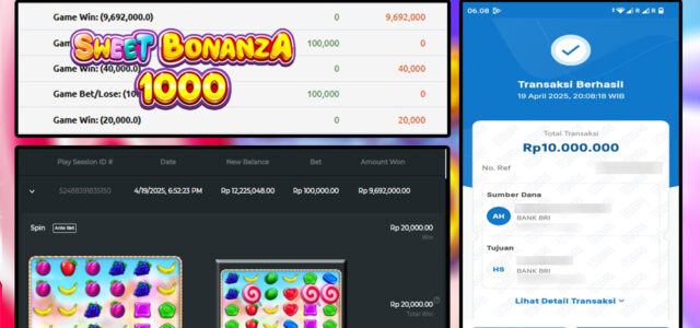 JACKPOT SLOT SWEET BONANZA 1000 20 APRIL 2025, Jackpot Slot, Kemenangan Slot, Bukti Kemenangan Slot, Kemenangan Slot PRAGMATIC PLAY, Menang Slot online,Situs Aman Terpercaya, WD Berapapun Pasti DI Bayar Tuntas, Maxwin Slot Online.