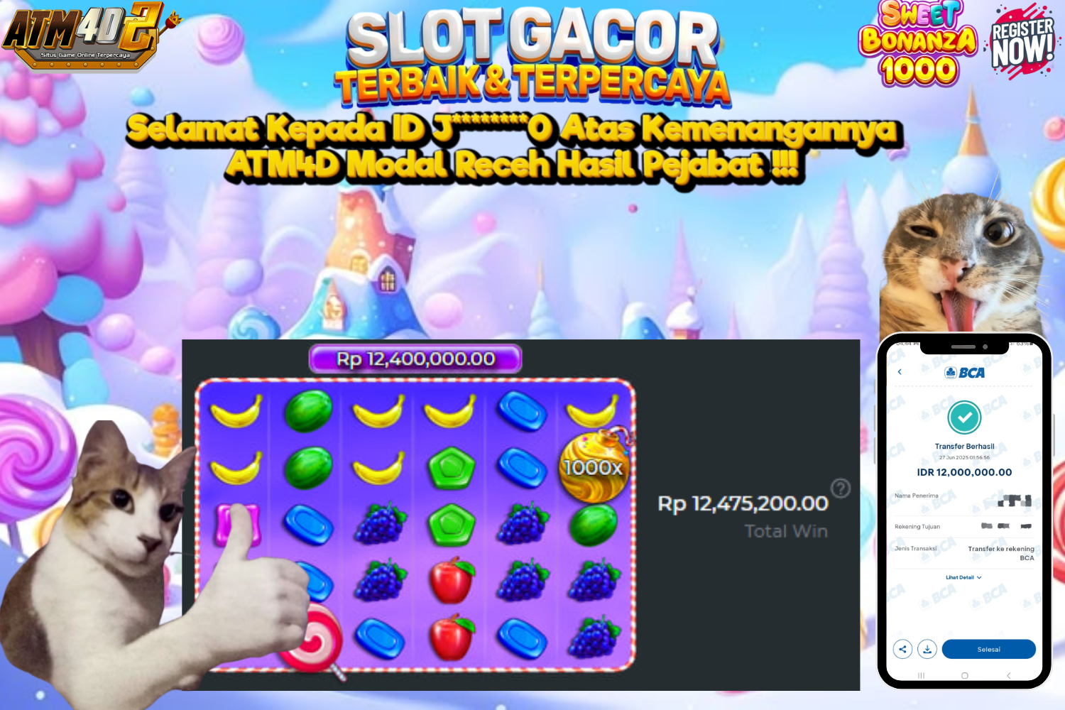 ATM4D2 dikenal sebagai situs terpercaya yang selalu menghadirkan pengalaman bermain slot online yang aman, fair, dan berlisensi resmi. Di sini, kami tidak hanya sekadar memberikan janji, tapi bukti nyata berupa slip kemenangan yang dapat Anda lihat secara langsung.