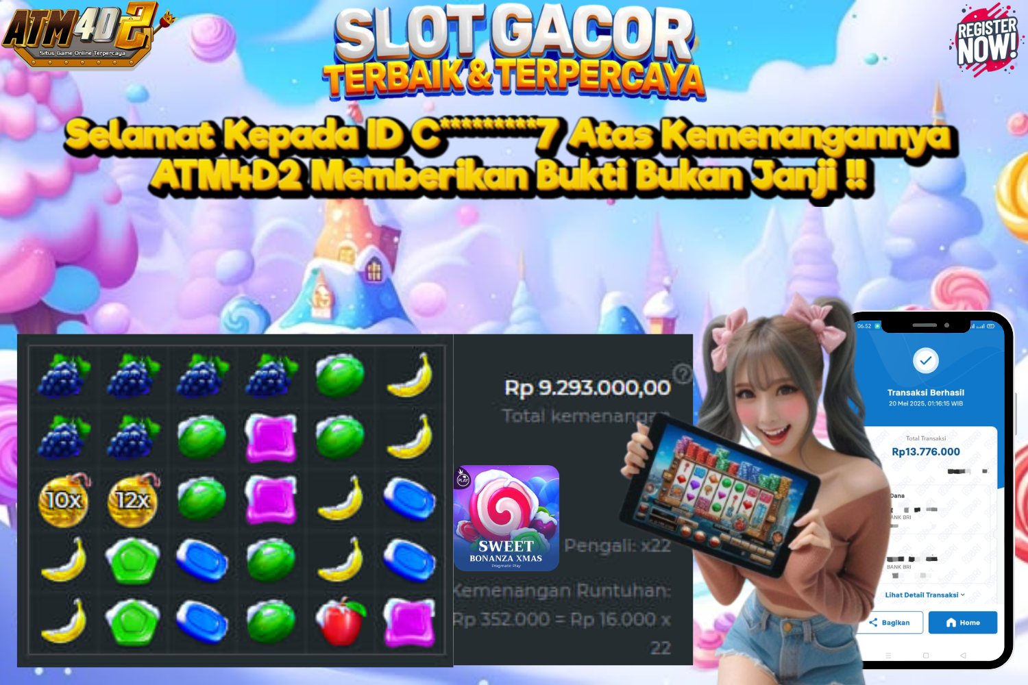 ATM4D2 dikenal sebagai situs terpercaya yang selalu menghadirkan pengalaman bermain slot online yang aman, fair, dan berlisensi resmi. Di sini, kami tidak hanya sekadar memberikan janji, tapi bukti nyata berupa slip kemenangan yang dapat Anda lihat secara langsung.