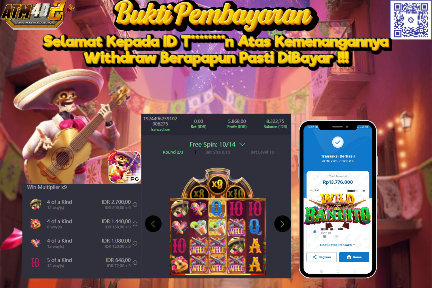 ATM4D2 dikenal sebagai situs terpercaya yang selalu menghadirkan pengalaman bermain slot online yang aman, fair, dan berlisensi resmi. Di sini, kami tidak hanya sekadar memberikan janji, tapi bukti nyata berupa slip kemenangan yang dapat Anda lihat secara langsung.